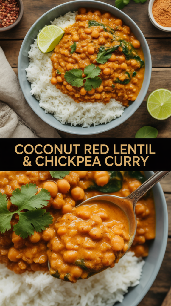 I love this creamy, warming, deeply spiced, protein-rich vegan meal for weeknights when I want comfort food without fuss. This Coconut Red Lentil & Chickpea Curry is my go-to when I need speed, flavor, and minimal cleanup.