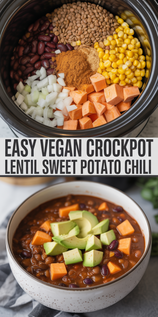 Ingredients for Easy Vegan Crockpot Lentil Sweet Potato Chili