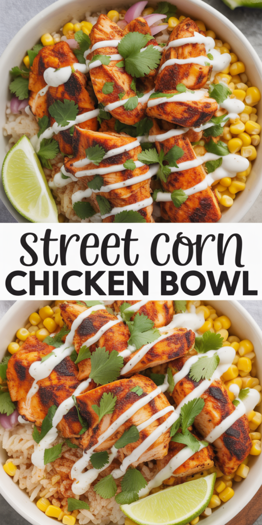 I love how this bowl tastes: smoky chili-spiced chicken, sweet charred corn, fluffy rice, and a creamy lime sauce that ties it all together with bright citrus. It feels colorful, smoky, creamy, and deeply satisfying in every bite.
