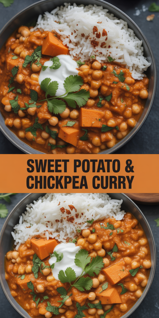 I make this Sweet Potato & Chickpea Curry when I want a warm, creamy plant-based dinner that still feels like comfort food. It mixes tender cubes, hearty beans, and a silky coconut sauce that clings to jasmine rice.