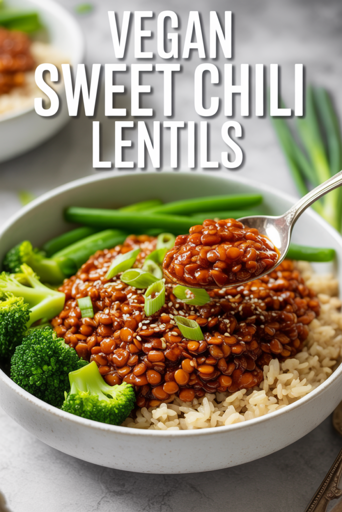 Core formula to remember: sauté aromatics, simmer lentils in a glossy glaze (sweet chili sauce + soy/tamari + rice vinegar), whisk in a cornstarch slurry, finish with sesame oil. Build bowls with rice, quick greens, scallions, and sesame seeds.